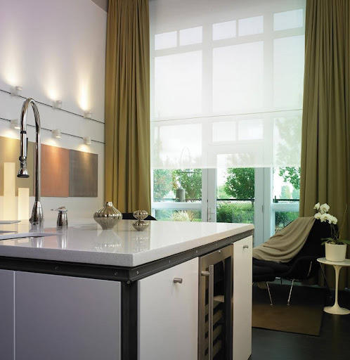 Motorized shades can play an integral role in your smart home. Pairing it with a home automation system, like that of our partner Crestron, can create scenes for different activities and times of the day. For example, a wake-up scene might open your shades partially to wake you to natural light, as well as turn on some lights in your bedroom and kitchen. In the late evening, the shades can be raised automatically to admire the view in your backyard, with your landscape lighting coming on simultaneously.